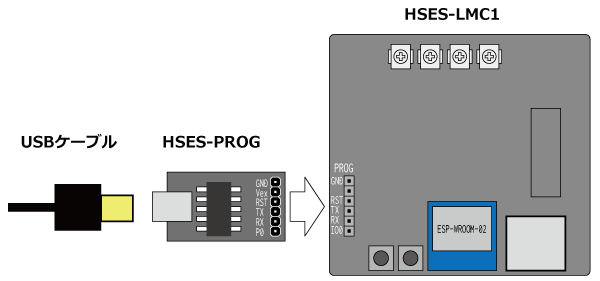 - 専用のUSBシリアル変換モジュール HSES-PROG という製品を用意しています。