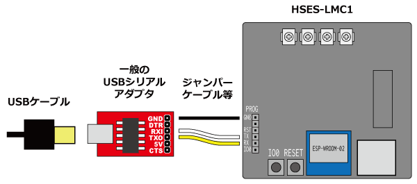 - Arduino用などの一般のUSBシリアル変換モジュールでHSES-LMC1にプログラムを書き込むこともできます。