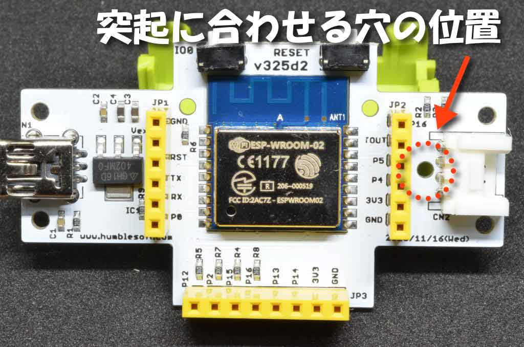 - Grove Wrapperの突起の位置と基板の穴の位置を合わせ