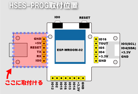 下の図のようにHSES-NODEの左側にとりつけてください。